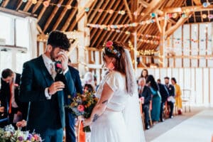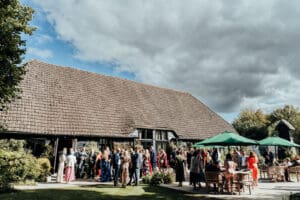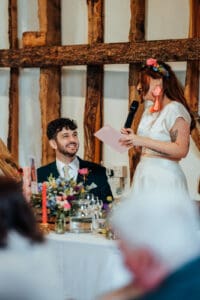 Clock Barn is a gorgeous, exclusive-use barn in the Hampshire countryside, with space to make the day completely yours. Gardens for outdoor ceremonies and drinks, a bright Main Barn for dining and dancing, and the cosy Stable Room for quieter moments. Plus, on-site accommodation for you and your guests means the party can carry on without anyone rushing home. Perfect for couples who want a relaxed, creative, and colourful barn wedding that feels 100% them.