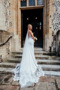 Ella was a vision in her stunning, figure-hugging dress from Little London Brides. She looked absolutely beautiful, and Dean couldn’t take his eyes off her.